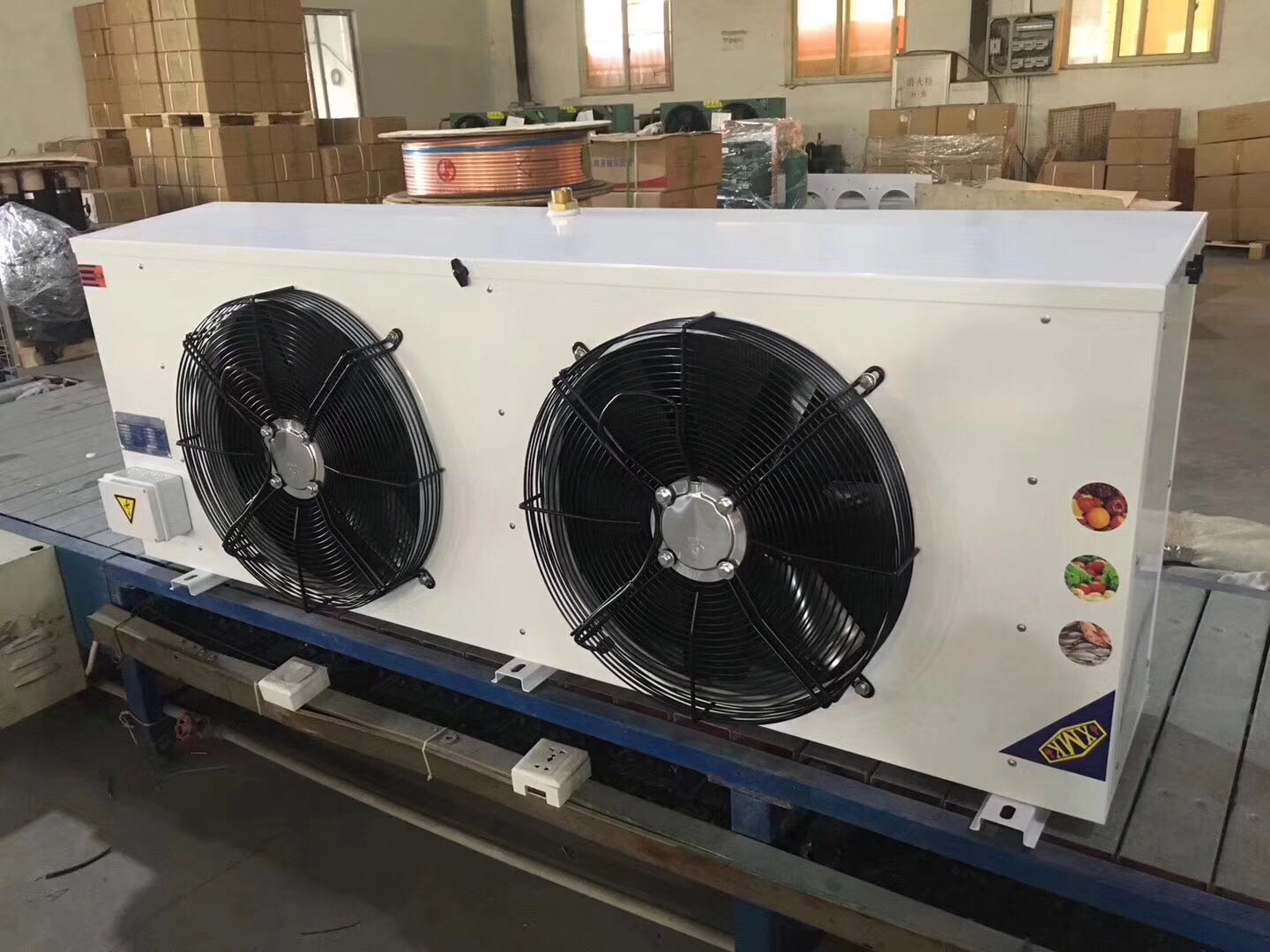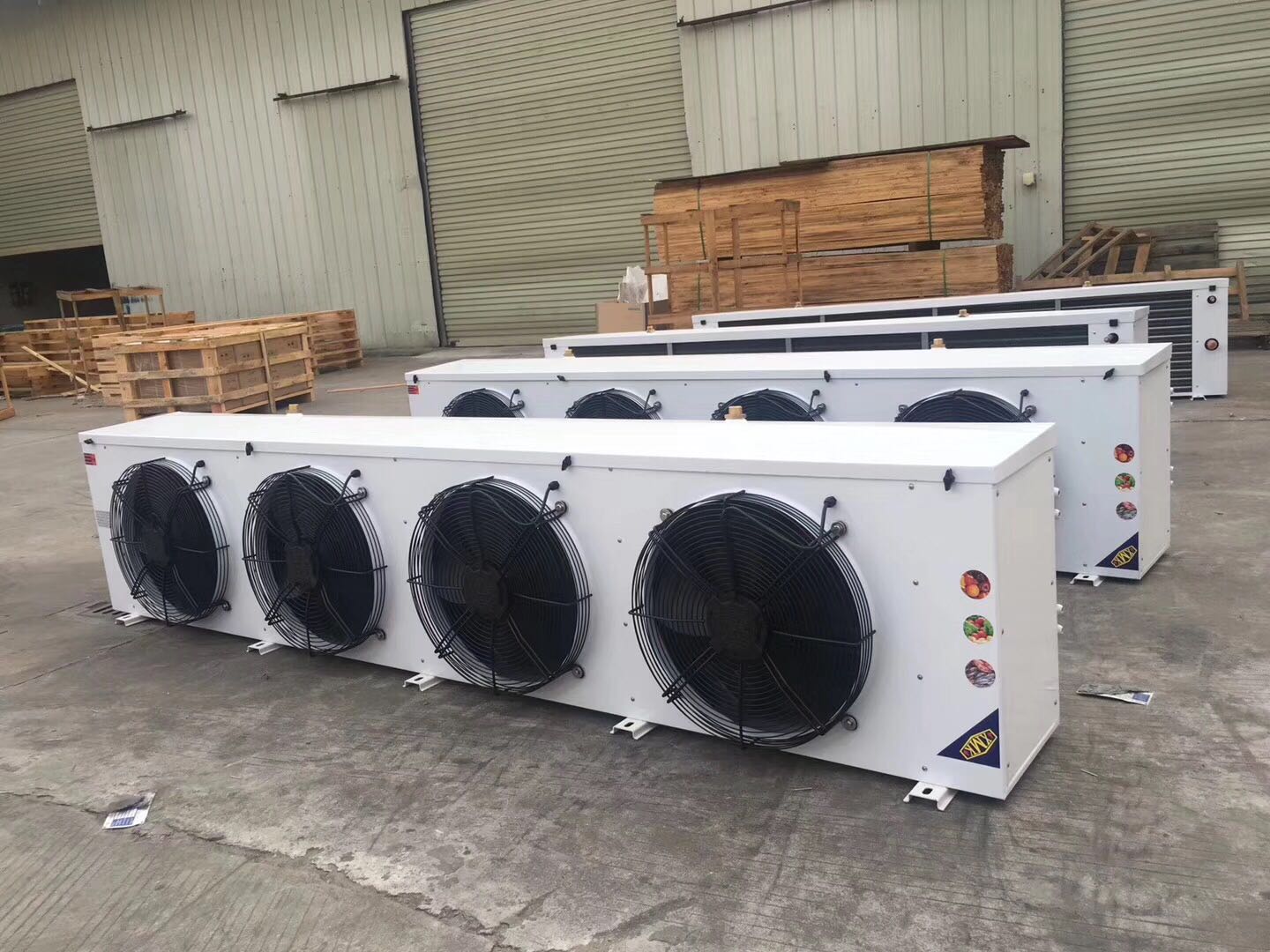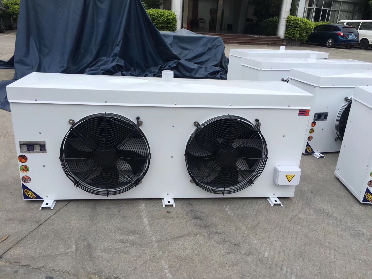 D型(吊頂式)、L型(落地式)、S型(雙出風式)系列空氣冷卻器(又稱 冷風機)是一種適用于各種冷庫(如土建冷庫或組合冷庫)的冷卻降溫設備,分 別使用于不同庫溫的冷庫。它具有結構緊湊,重量輕,不占用冷庫使用面積,庫 溫均勻,效率高等優點,使冷庫內貯藏的食品迅速降溫,大大提高了貯藏食品的 保鮮度。